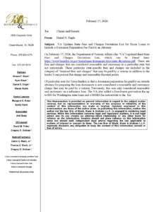On February 17, 2026, the Department of Veteran Affairs (the “VA”) updated their State Fees and Charges Deviations List, which can be found here: https://www.benefits.va.gov/homeloans/documents/docs/state-deviations.pdf. These are fees and charges that are considered reasonable and customary in a particular state but not nationwide. These particular state-specific fees and charges are included in the category of “itemized fees and charges” that may be paid by a veteran in addition to the lender’s one percent flat charge and reasonable discount points.